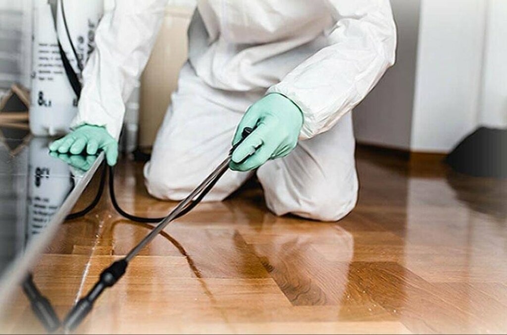 специалист проводит дезинсекцию в квартире с подготовленной вентиляцией